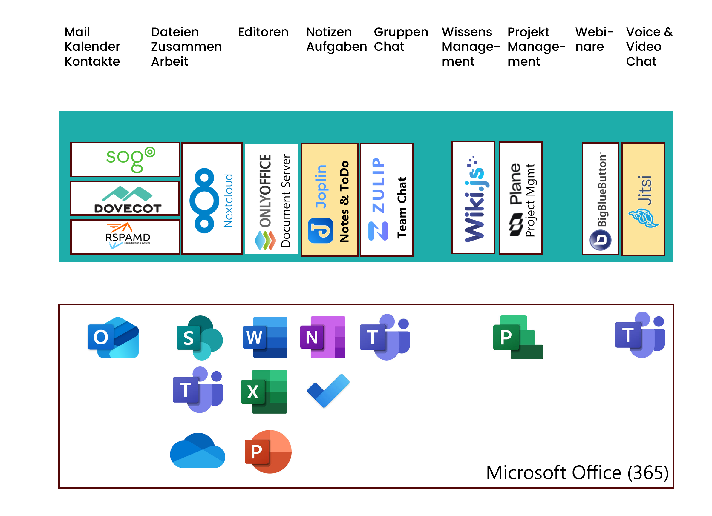 alles, was du von Microsoft 365 oder Google Workspace kennst, nur unabhängig, und DSGVO konform.