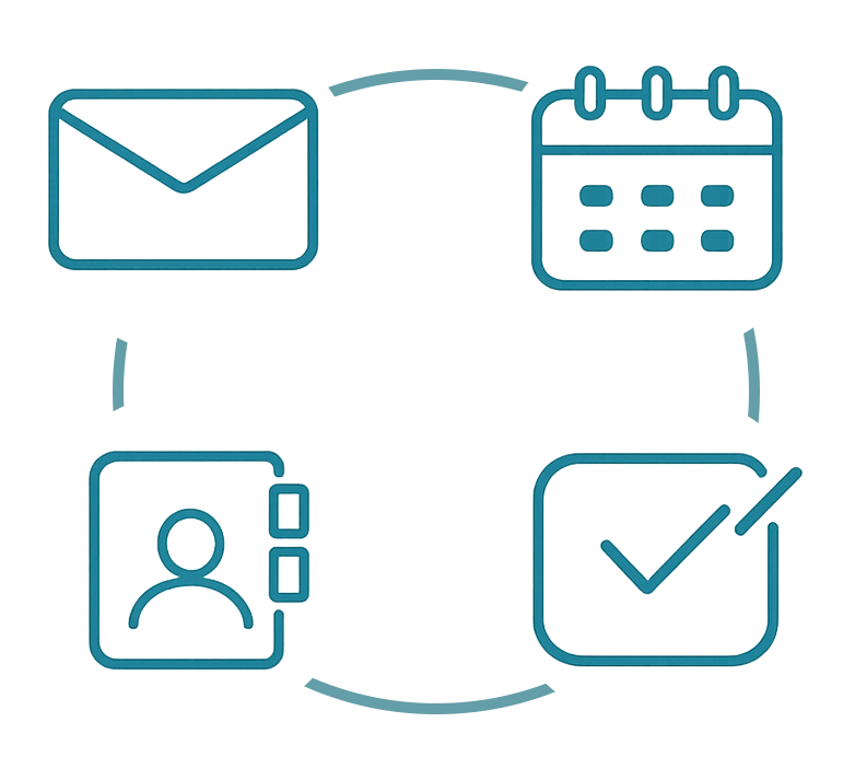 Digitale Zusammenarbeit besteht heute aus mehr als Nachrichten: Termine abstimmen, Kontakte teilen, Aufgaben im Blick behalten – und all das auf allen Geräten verfügbar haben.